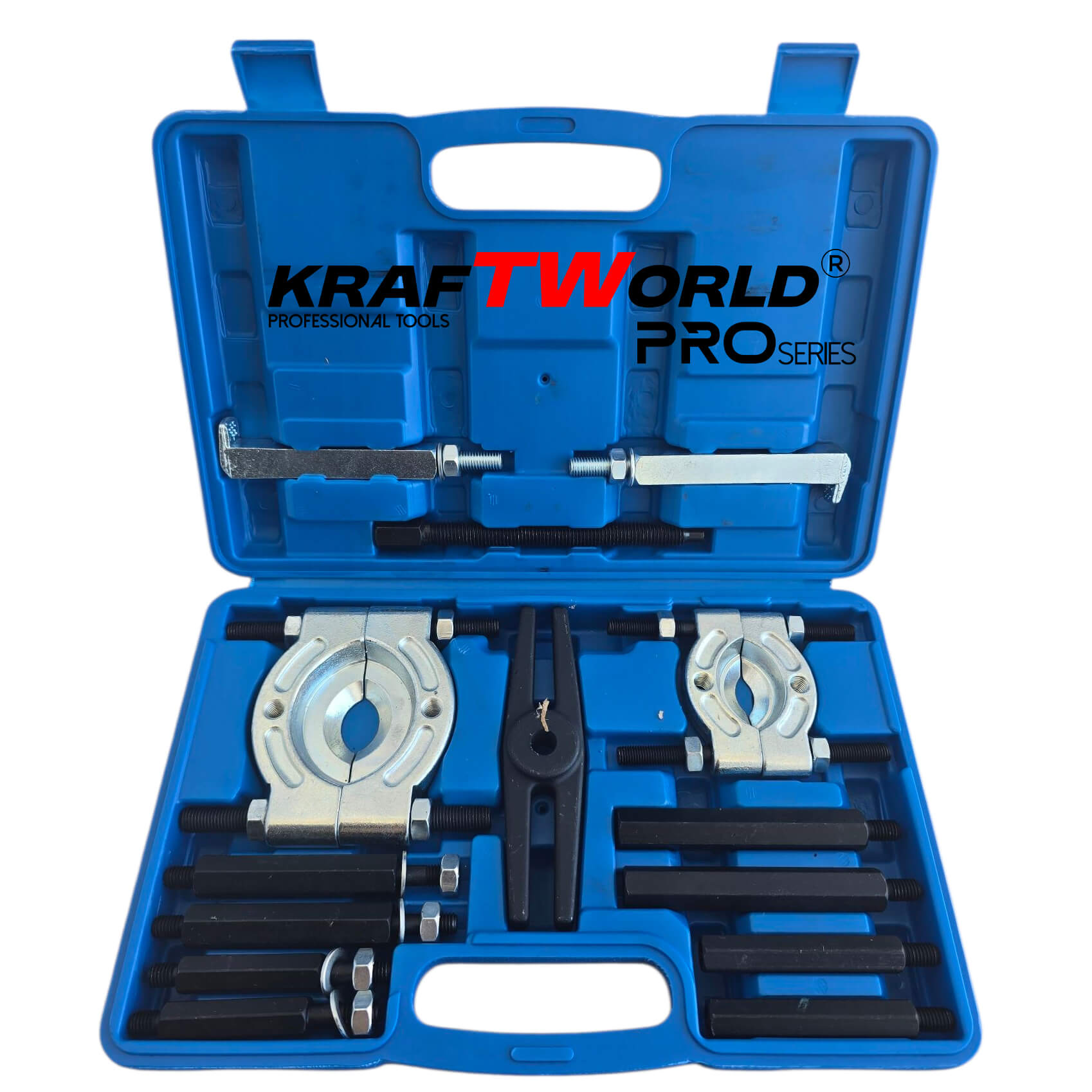 Този професионален комплект е предназначен за бърз и безопасен демонтаж на лагери, зъбни колела, ролки и други механични компоненти с диаметър от 30 до 70 мм. Изработен от висококачествени материали, комплектът осигурява дълготрайна и надеждна употреба както в автосервизи, така и в домашни условия.