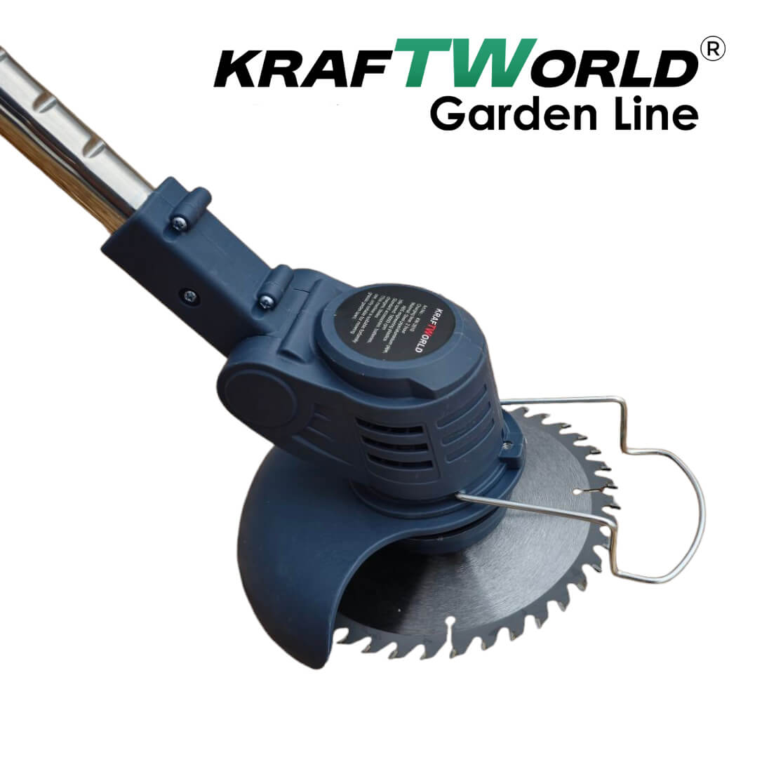 Тримерът е оборудван с въртяща се глава и различни приставки, които го правят изключително универсален.