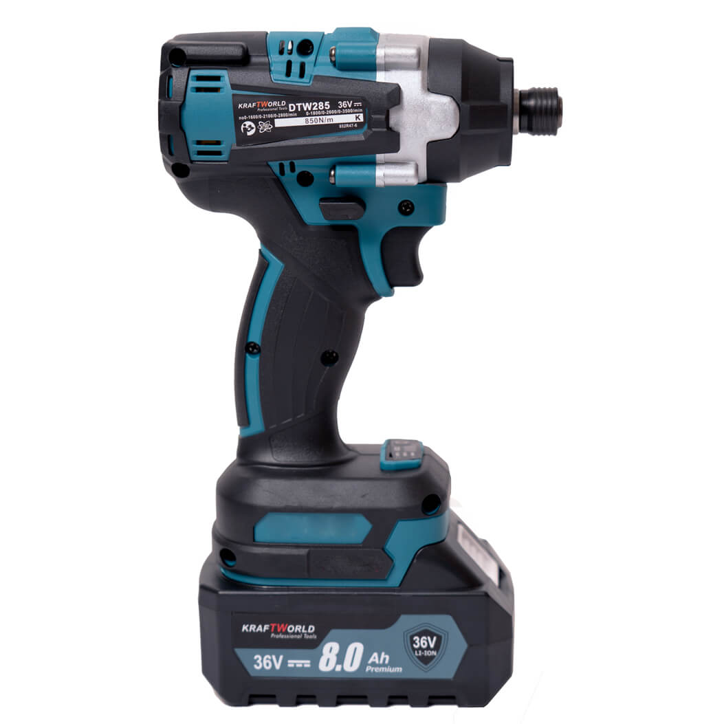 Ударен винтоверт KraftWorld се захранва от акумулаторна батерия с напрежение 42 V. Той е с висок въртящ момент 300 Nm. Доставя се с батерия 2бр и зарядно устройство в пластмасов куфар . Снабден е с ергономична ръкохватка с меко гумено покритие, кука за окачване на колан и LED подсветка за осветяване на работната зона.