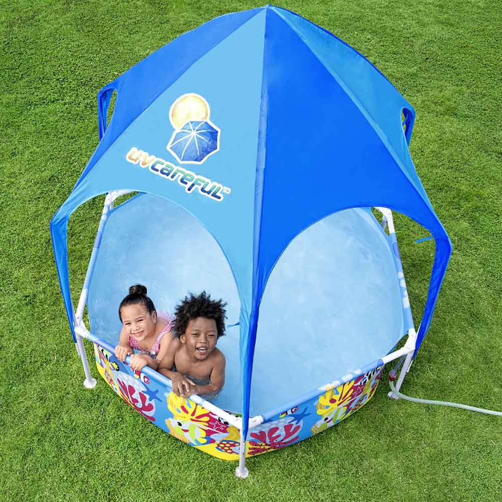 Сглобяемият басейн BESTWAY Steel Pro е идеалното решение за горещите летни дни. Със своя компактен размер и здрава конструкция, той осигурява прохлада и забавление за цялото семейство. Изработен е от висококачествени материали, които гарантират дълготрайна и надеждна употреба. Покривът осигурява защита от пряката слънчева светлина, което го прави още по-удобен за децата и възрастните.