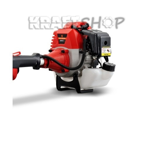 Професионална моторна коса KraftWorld с екологичен и мощен двигател. Оборудвана с мултифункционална ръкохватка с темпомат за потдържане на постоянна газ и ергономично водене на уреда. За бързо,удобно и икономично косене на големи зелени площи и жилави и спластени бурени и храсти.