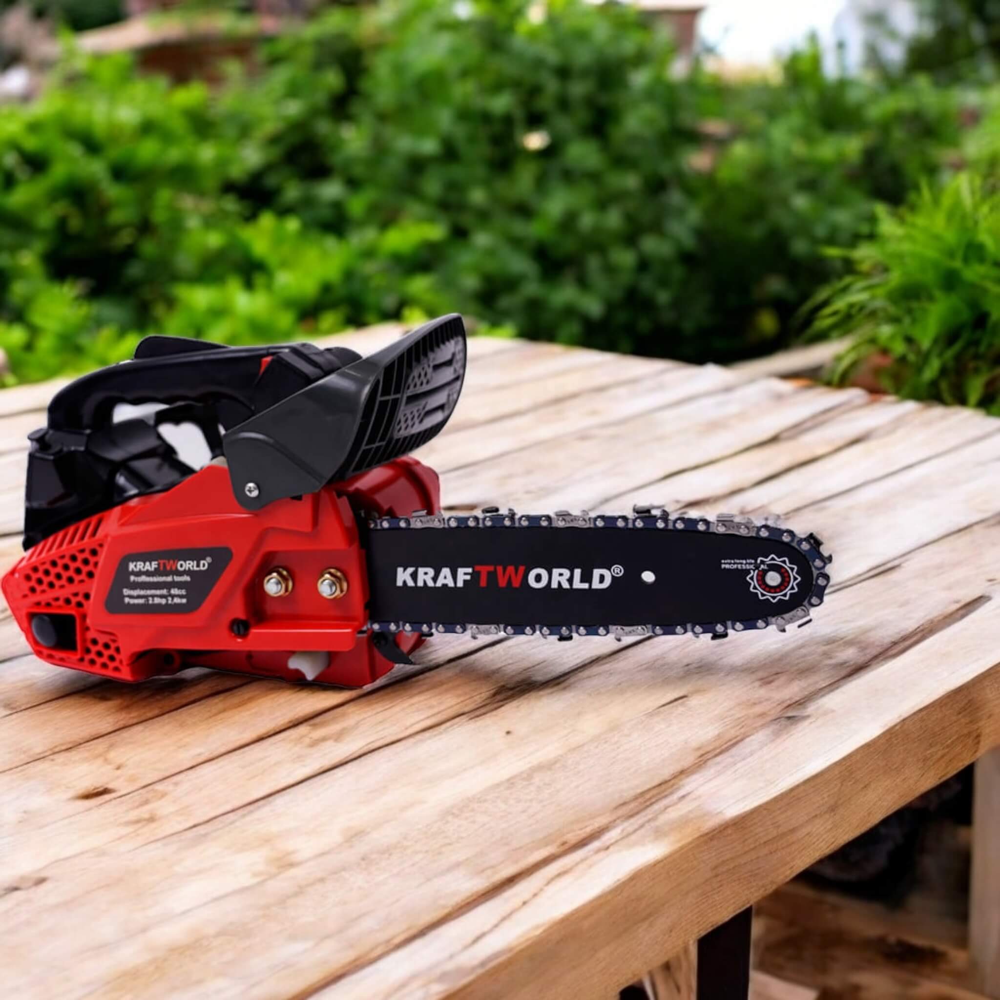 Резачка бензинова KraftWorld е професионална машина предназначена основно за кастрене на клони на дървета. Затова е толкова компактна, за да може да се работи и с „една ръка“. Машината е предназначена, както за професионални потребители, така и за собственици, които сами се грижат за дърветата в градините си.
