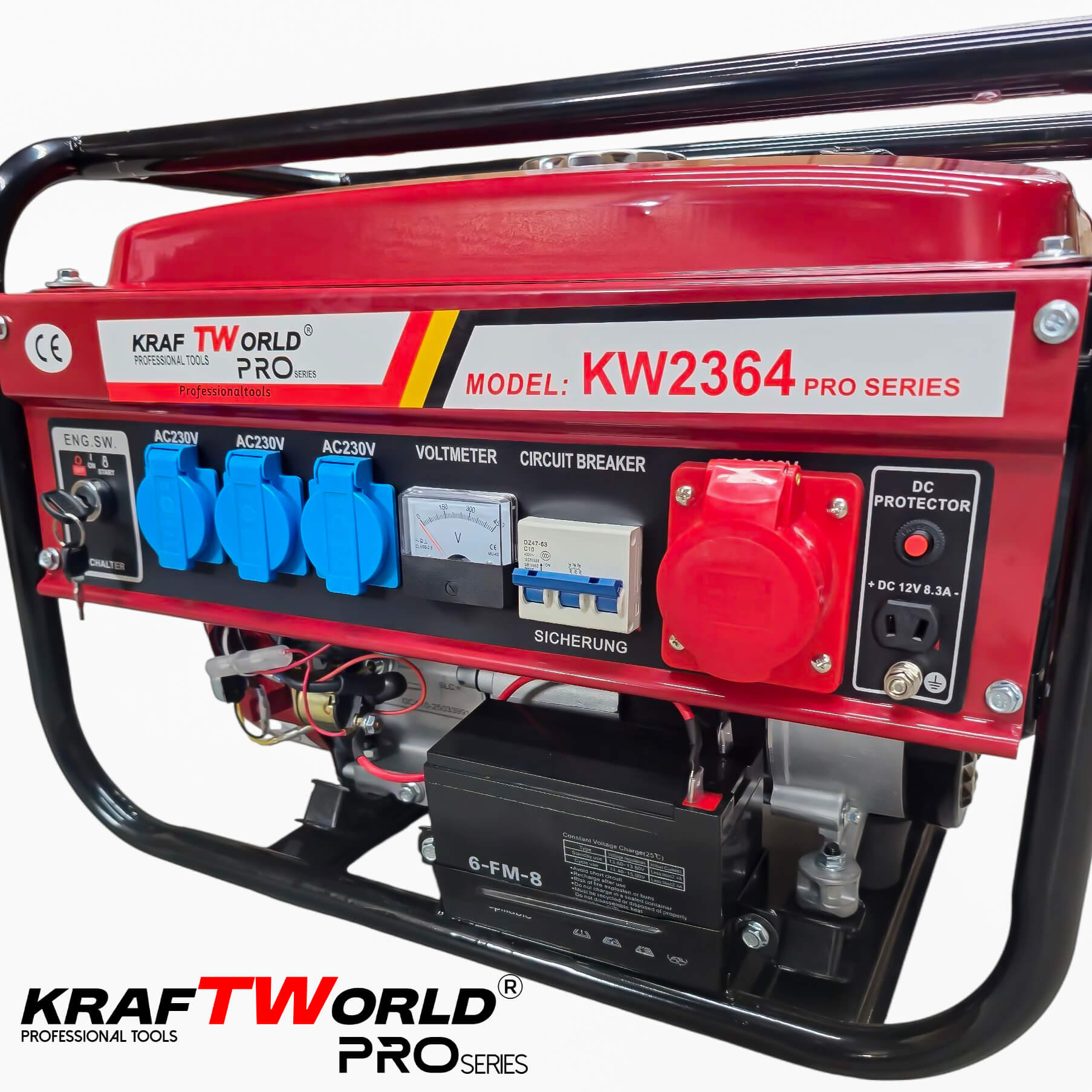 🔋 KraftWorld PRO KW-2364 – 4.5 kW бензинов генератор с дистанционно запалване, акумулатор и електростартер