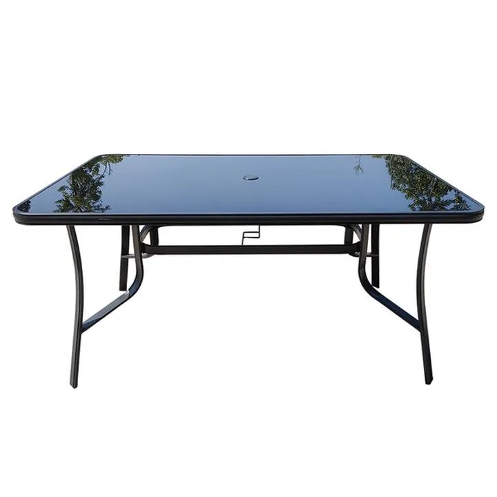 Плотът е изработен от тъмно темперирано стъкло, което е значително по-здраво от стандартното. Устойчив е на надраскване, UV лъчи, температурни разлики и атмосферни влияния. Освен практичността, тъмният стъклен плот придава изискан и професионален външен вид, който се съчетава лесно с различни видове градински столове.