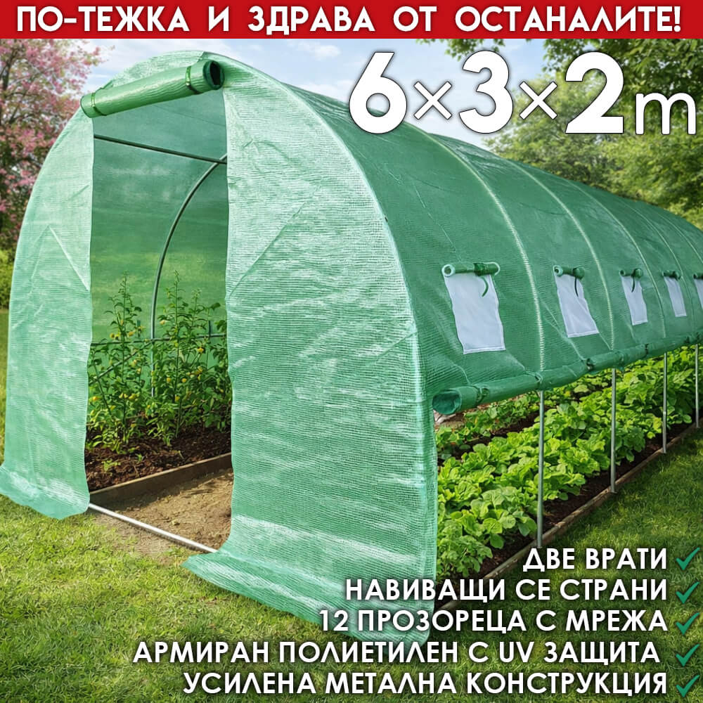 Ако досега си се борил с жега, конденз и задушени растения – тази оранжерия 6м с навиващи страни решава точно този проблем. Получаваш стабилна конструкция, голямо пространство и най-важното – пълен контрол върху въздуха вътре. Това не е стандартен парник, а реално подобрена система за отглеждане.