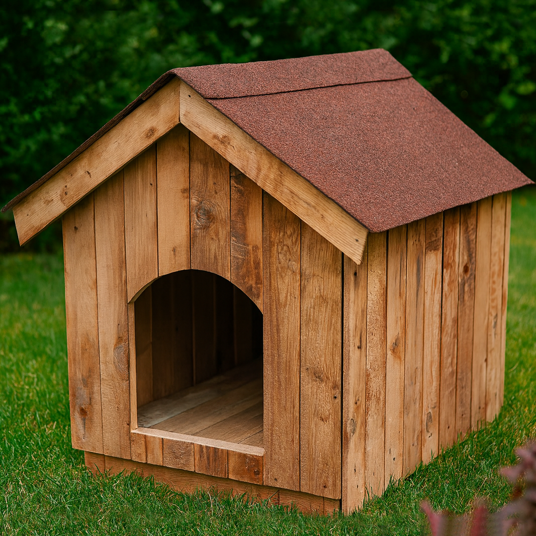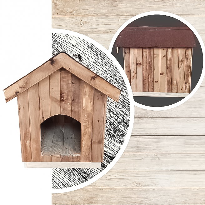 Къщата за кучета XL е изработена от висококачествена иглолистна дървесина, която осигурява здравина, стабилност и естествена изолация срещу студ и жега. Масивната конструкция я прави устойчива на всякакви атмосферни условия – вятър, дъжд и пряко слънце.