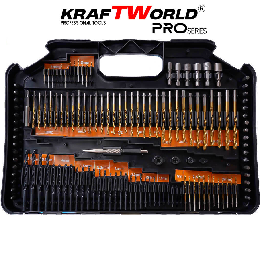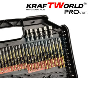 Пълен професионален комплект за пробиване и завинтване – идеален за работа в метал, дърво и зидария. Събран в луксозен пластмасов куфар, комплектът предлага перфектна организация и достъп до всяка част.