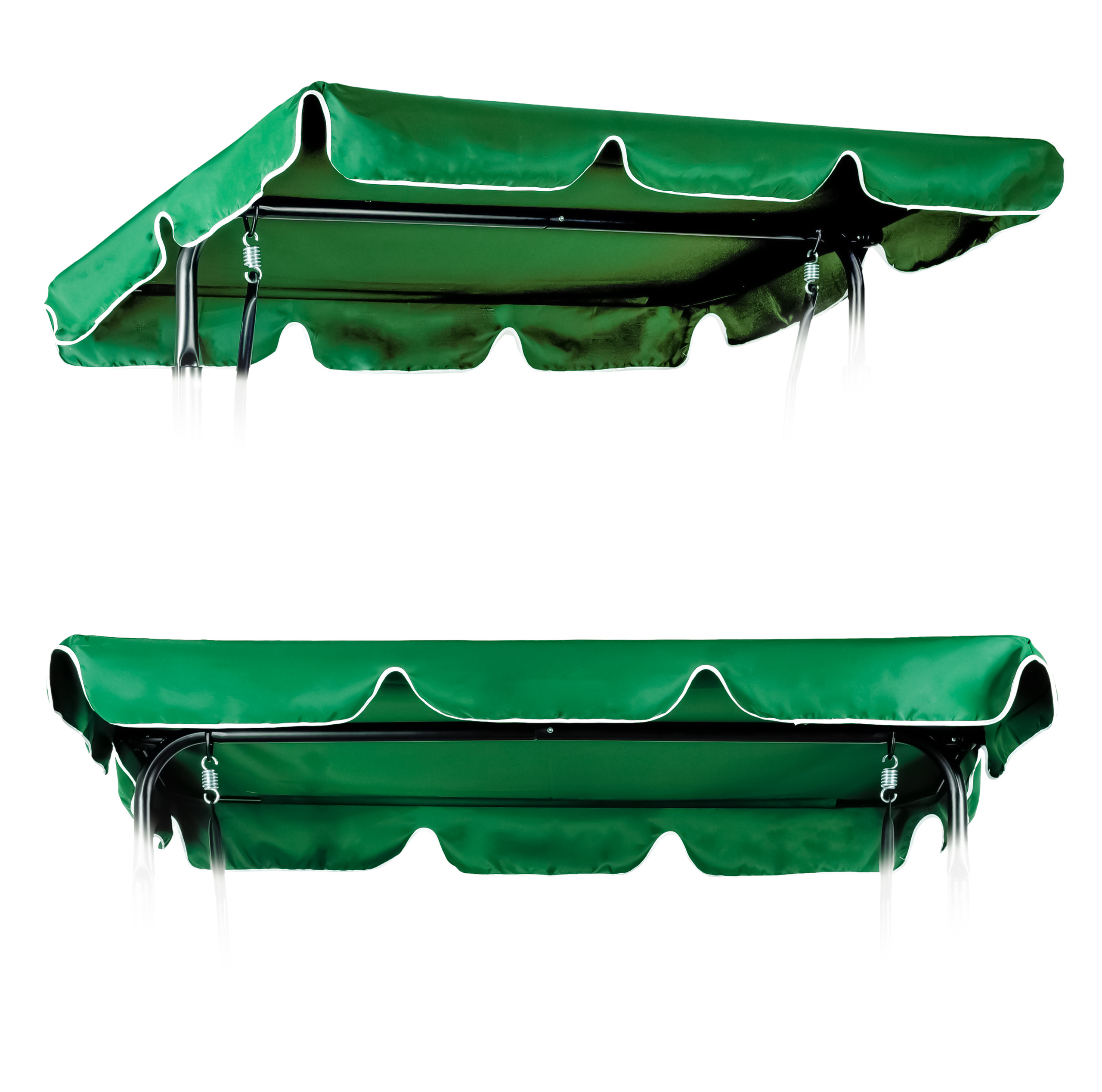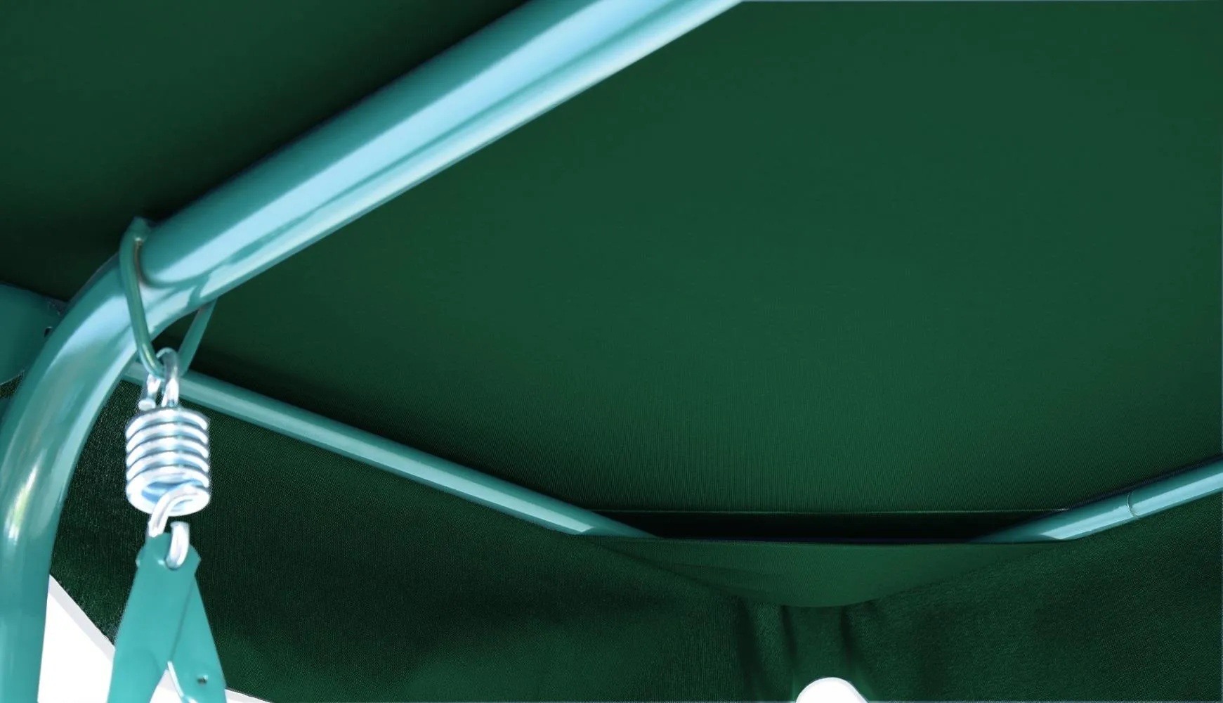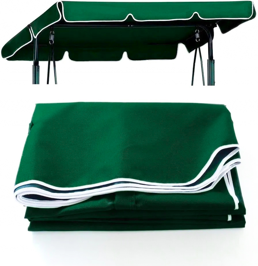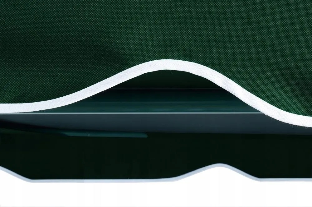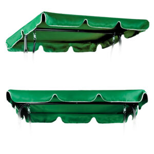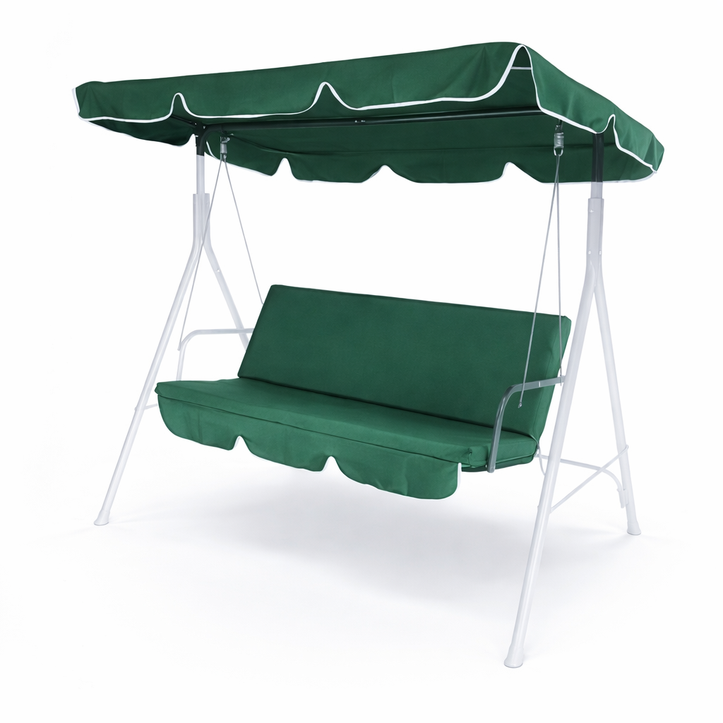 Комплектът е в зелен цвят с бял кант, който се вписва естествено в градинска среда и лесно се комбинира с различни конструкции и цветове на люлки.