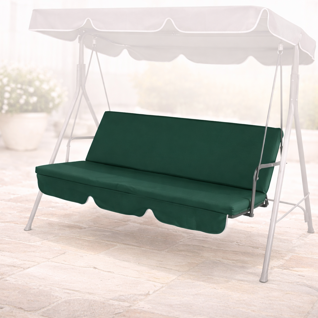 Възглавницата е проектирана да покрива седалката и облегалката на триместната люлка, като осигурява стабилна опора и мекота при сядане. С дебелина от 4 см тя предлага отличен баланс между комфорт и устойчивост, без да се деформира при продължителна употреба. Подходяща е за дълги следобеди, четене или почивка на открито.