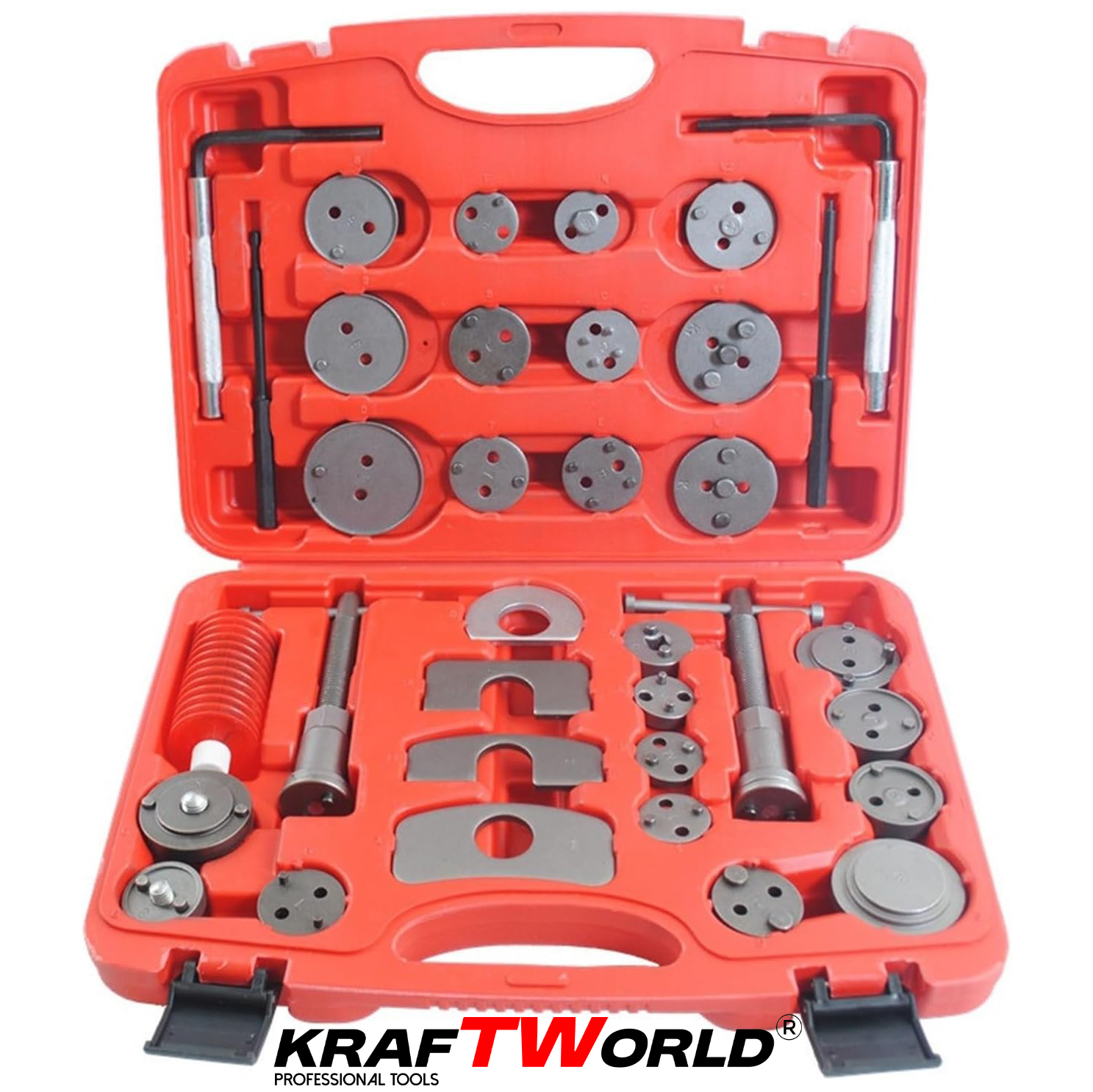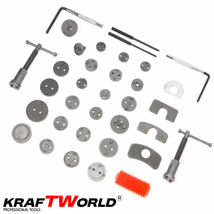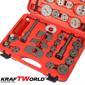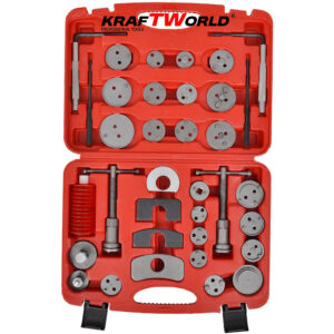 Когато работите по спирачната система на автомобила, точността е задължителна. Неправилното прибиране на буталото може да повреди уплътненията, да изкриви механизма или да доведе до неравномерно спиране. Именно затова комплектът за спирачни цилиндри KraftWorld – 35 части е създаден като надеждно решение за прецизно обслужване и ремонт на дискови спирачки.