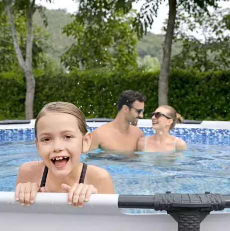 Стените на басейна са изработени от иновационния DuraPlus™ материал – трислоен, с вътрешна полиестерна мрежа между два слоя плътен PVC. Това осигурява невероятна здравина, устойчивост на пробиви и деформации, както и дълъг експлоатационен живот.