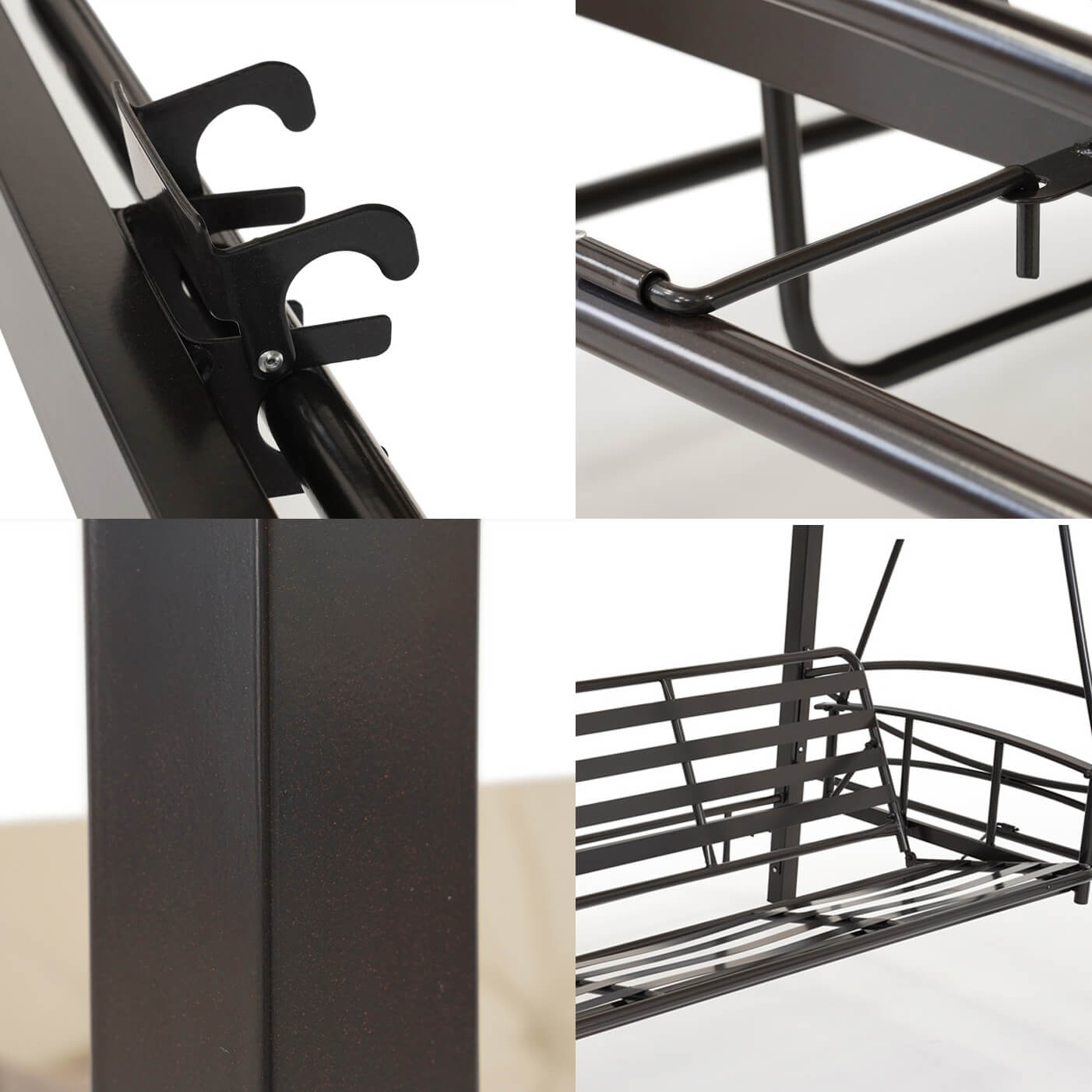 Стабилна метална конструкция, изработена от прахово боядисана стомана – устойчива на атмосферни условия и натоварване до 300 кг.