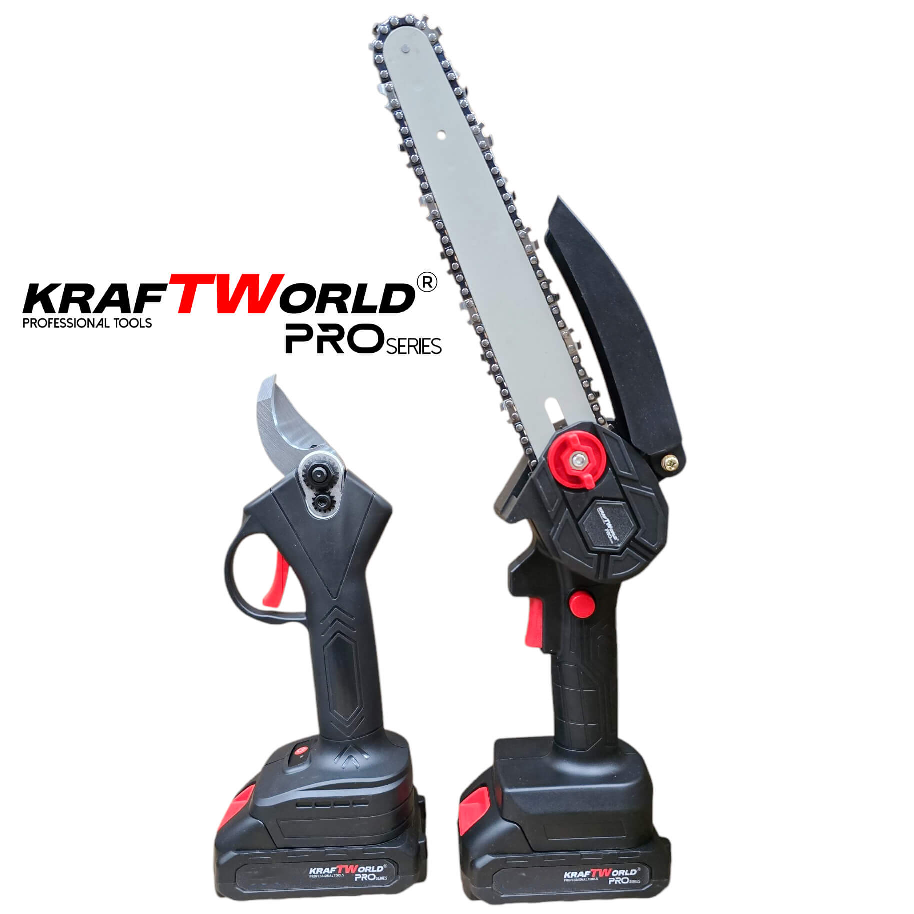 Поддържайте градината си без усилие с акумулаторния комплект KraftWorld, който съчетава две от най-нужните градински инструменти – мини резачка за клони и професионална лозарска ножица. Вече в един удобен куфар, този комплект ви осигурява мобилност, мощност и дълготрайна работа, благодарение на общите 21V 2Ah батерии, които могат да се използват и за двата инструмента.