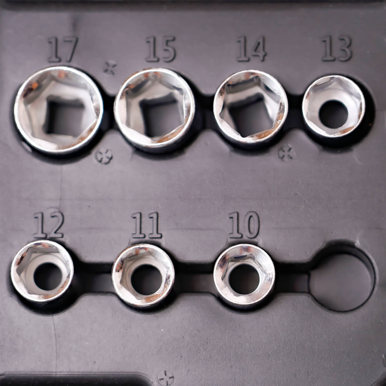 – Вложки (3/8“): 10, 11, 12, 13, 14, 15, 17 мм