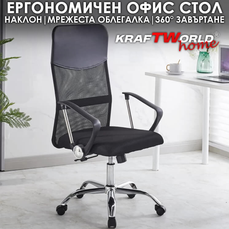 Ергономичен офис стол KraftWorld ErgoLine – комфорт и правилна стойка през целия ден 🪑💻