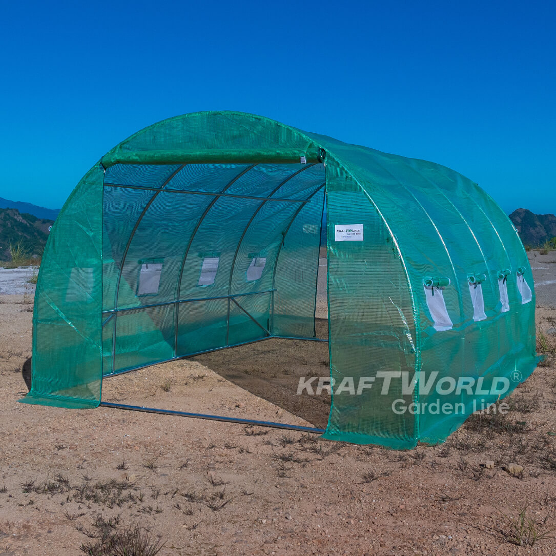 Всеки елемент е изграден от висококачествена поцинкована стомана, което гарантира висока устойчивост и стабилност. Това не е тънка и вибрираща конструкция – тук говорим за реална здравина, подходяща и за по-сериозно градинарство. Парникът стои стабилно и не „играе“ като бюджетните модели.