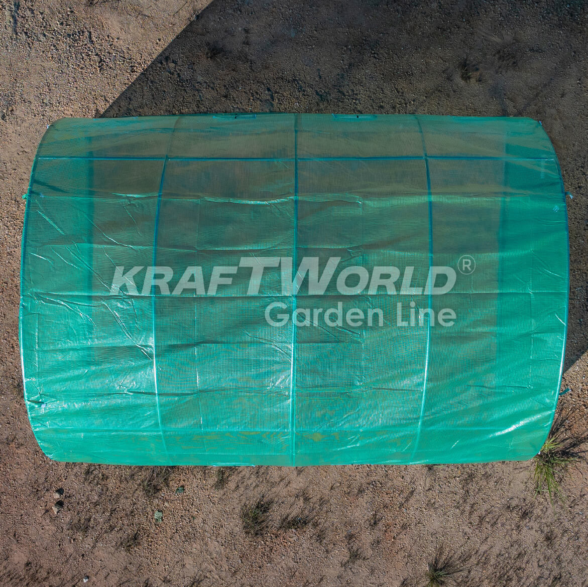 Това е точно парникът KraftWorld Garden Line, който получаваш – без каталожни изображения, без филтри и без подвеждане. Виждаш истинската конструкция, покритие, закрепване и стабилизиране на оранжерията в реални условия.