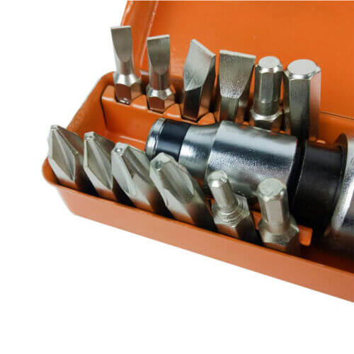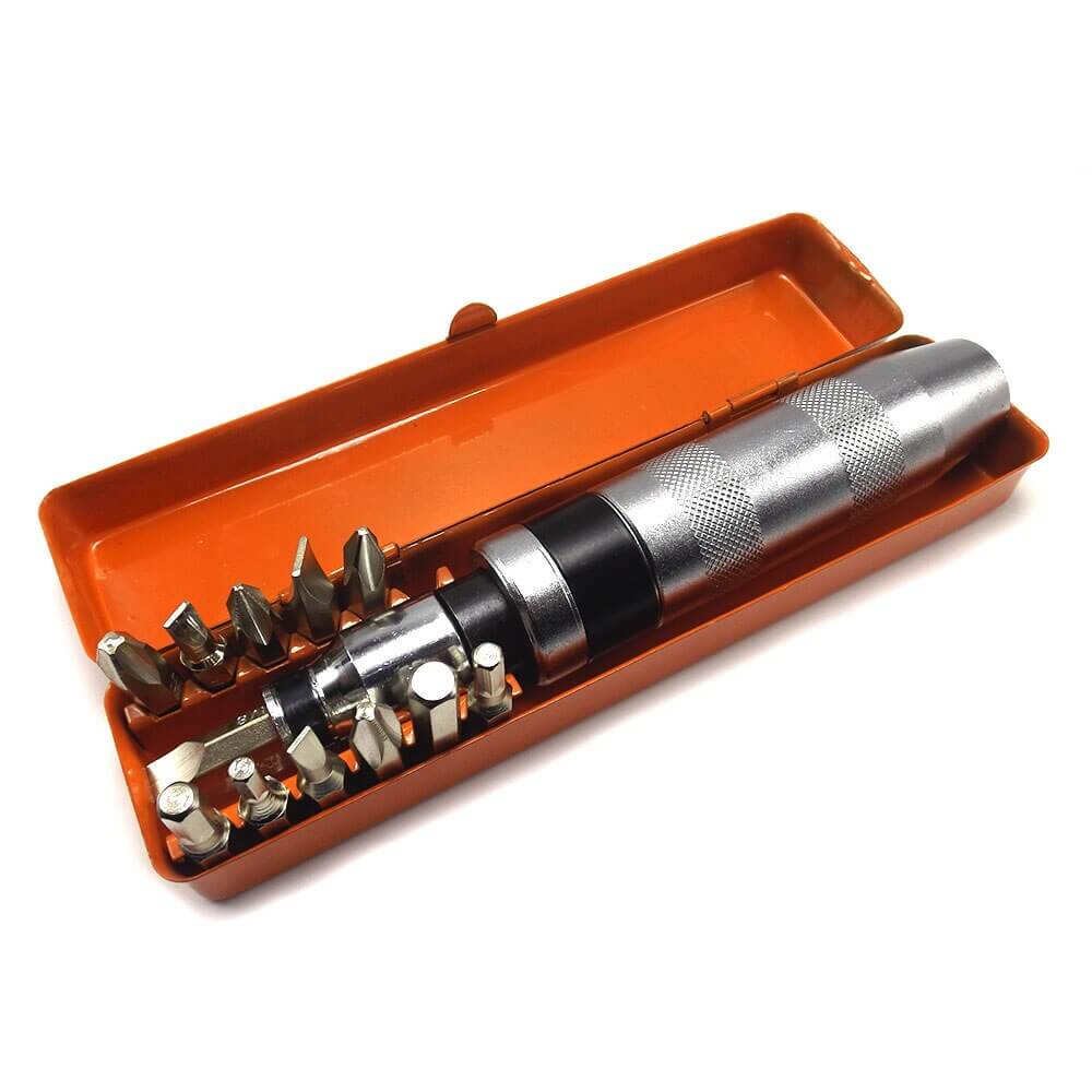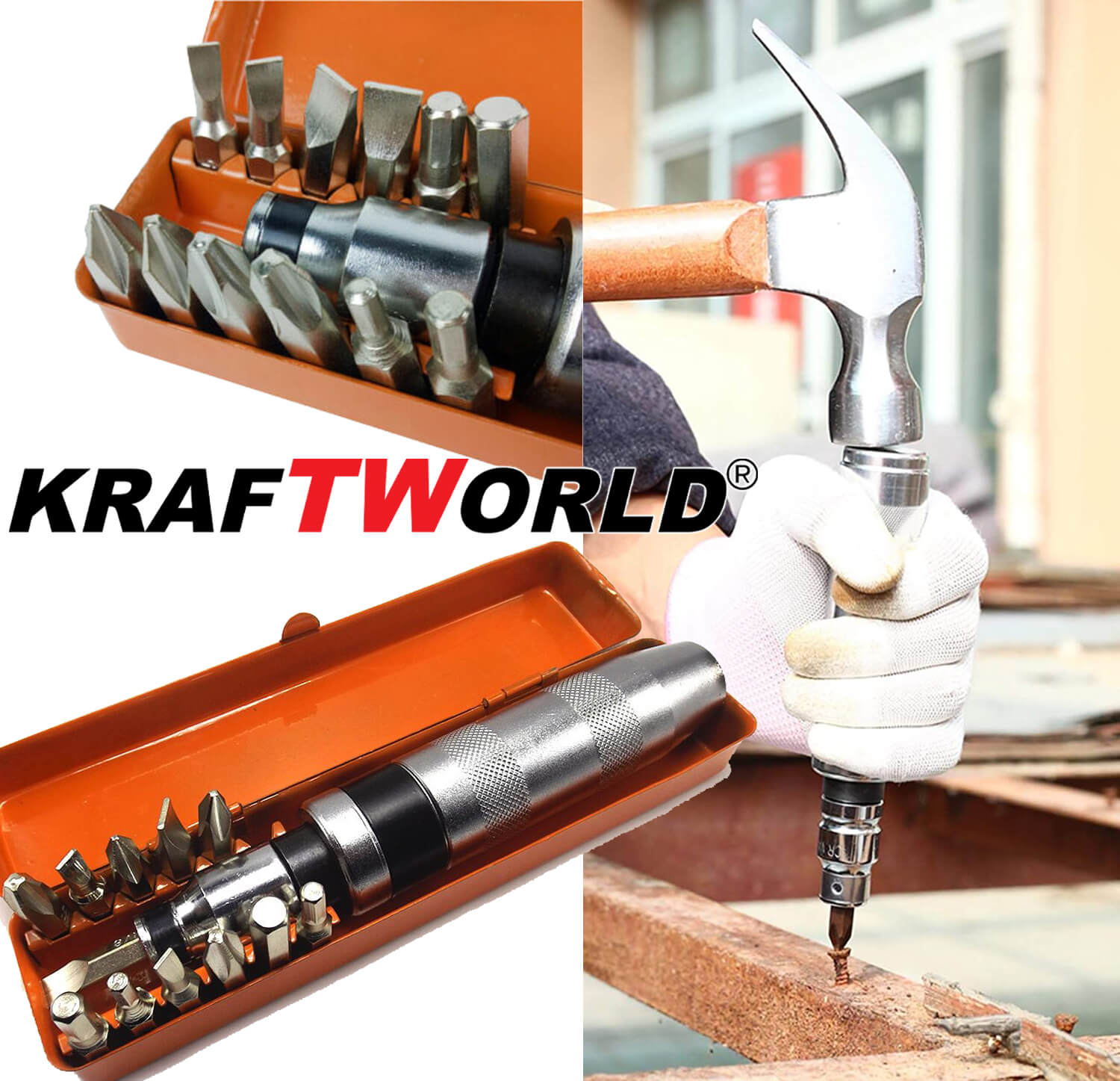 Комплект ударна отвертка с ляв/десен превключвател, с 13 части.