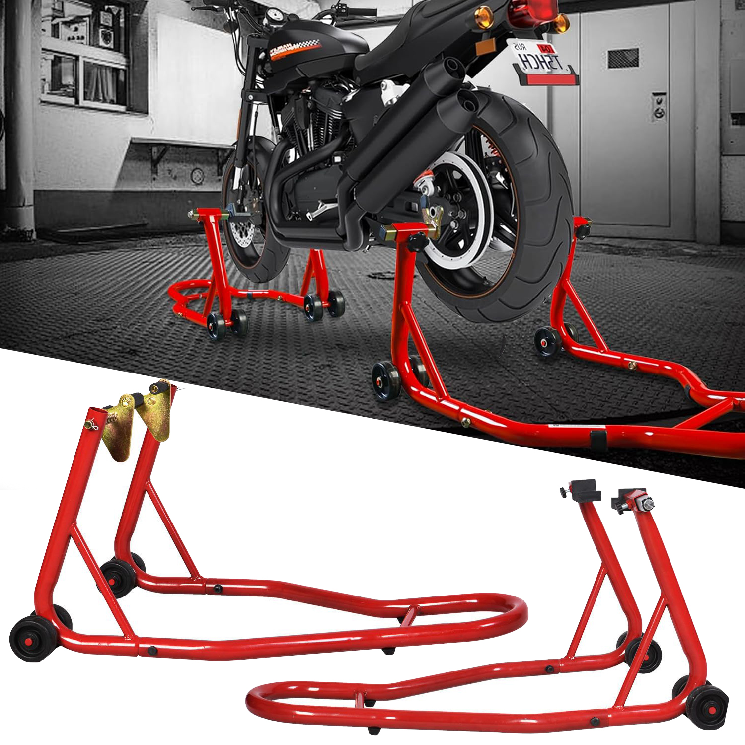 Предна и задна стойка за мотор KraftWorld – двойни колела, регулируема широчина