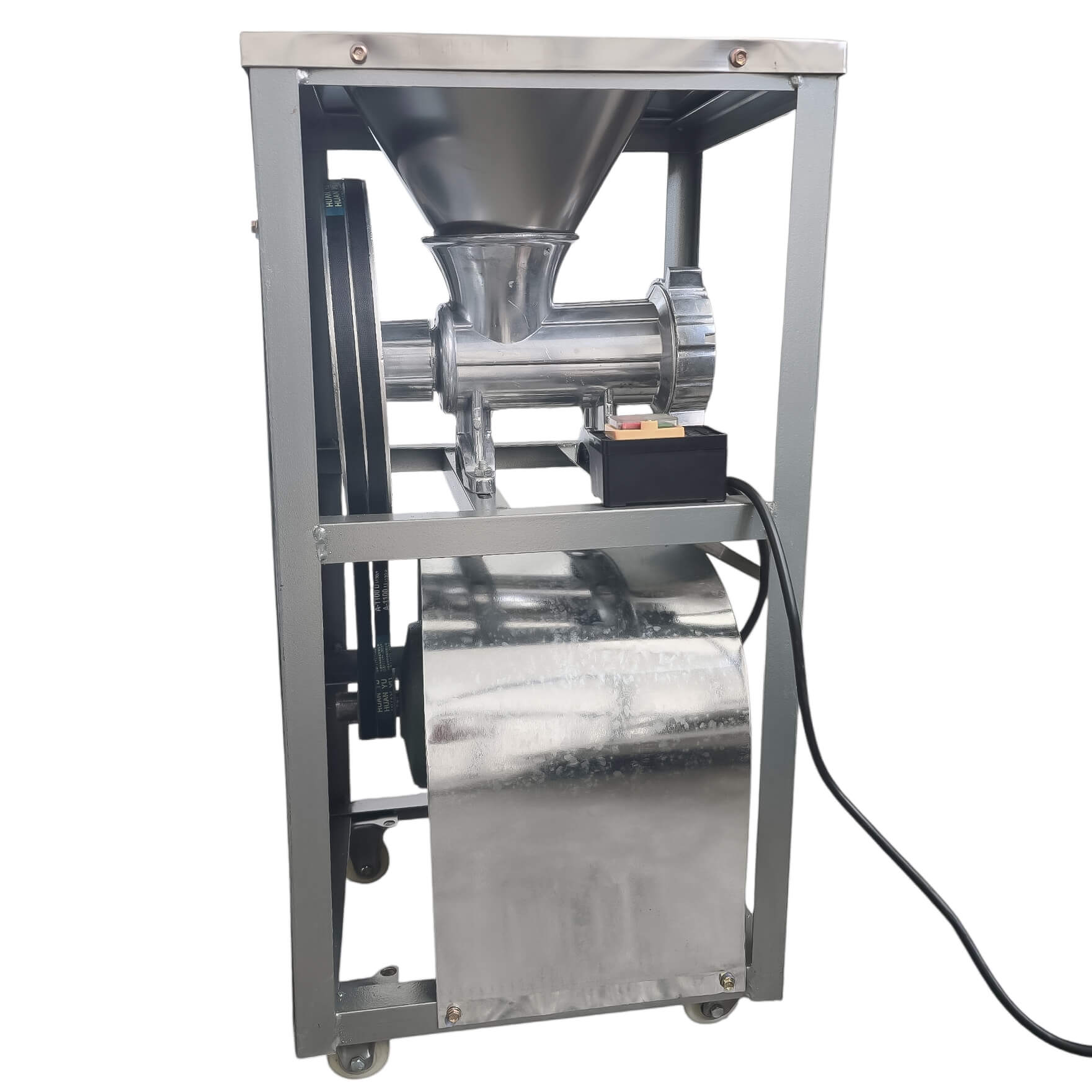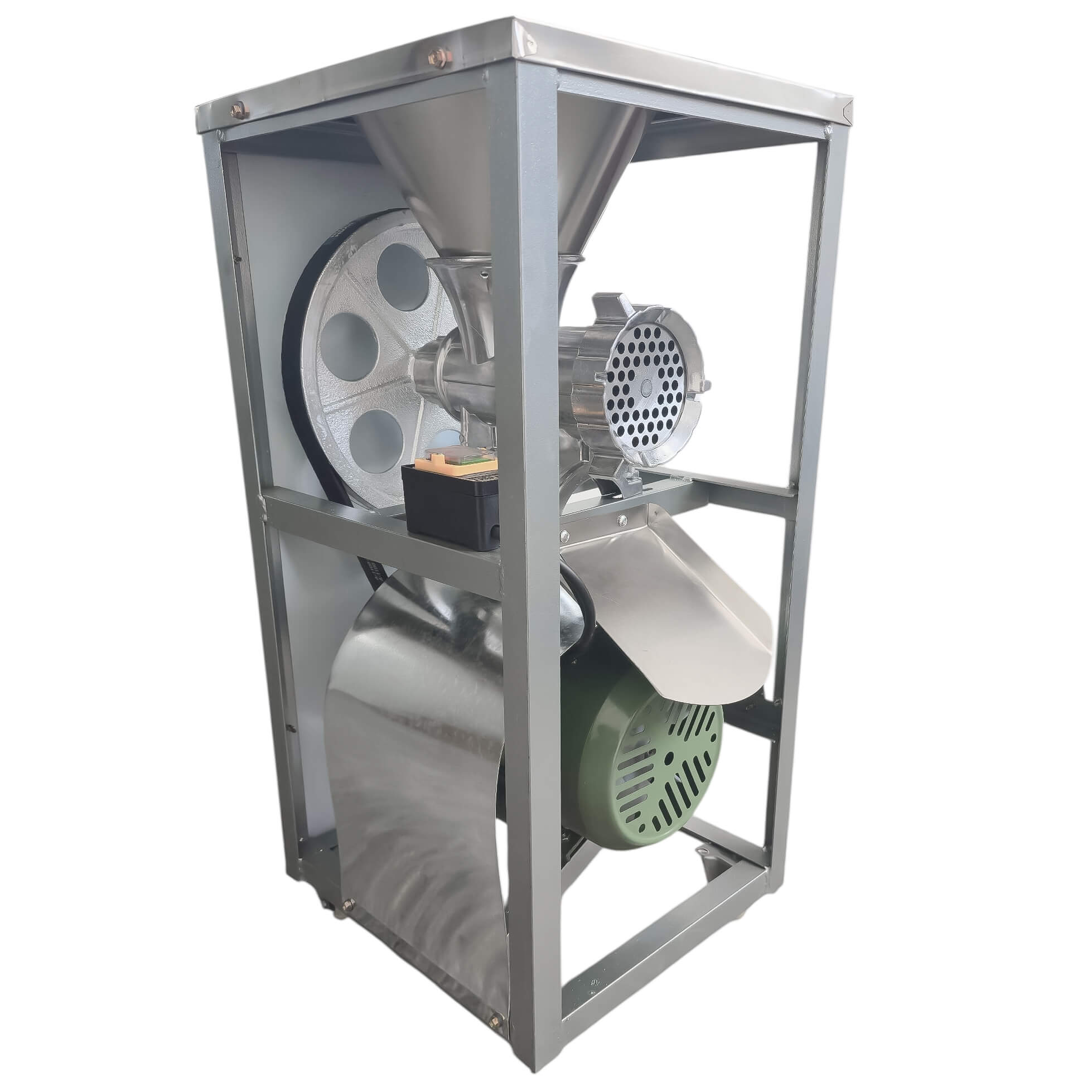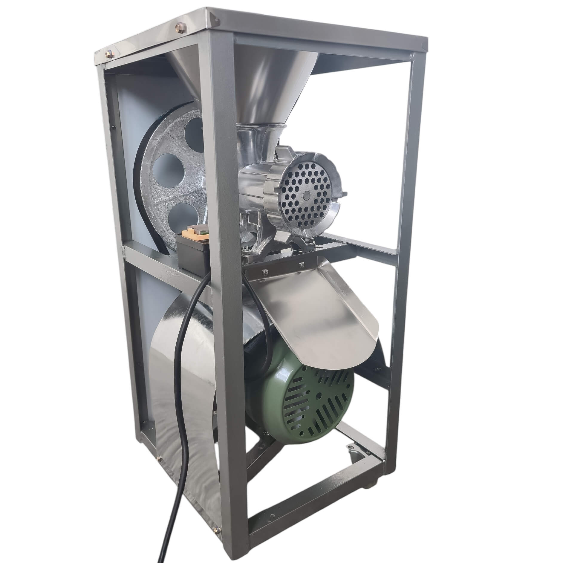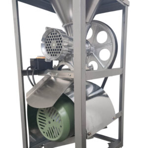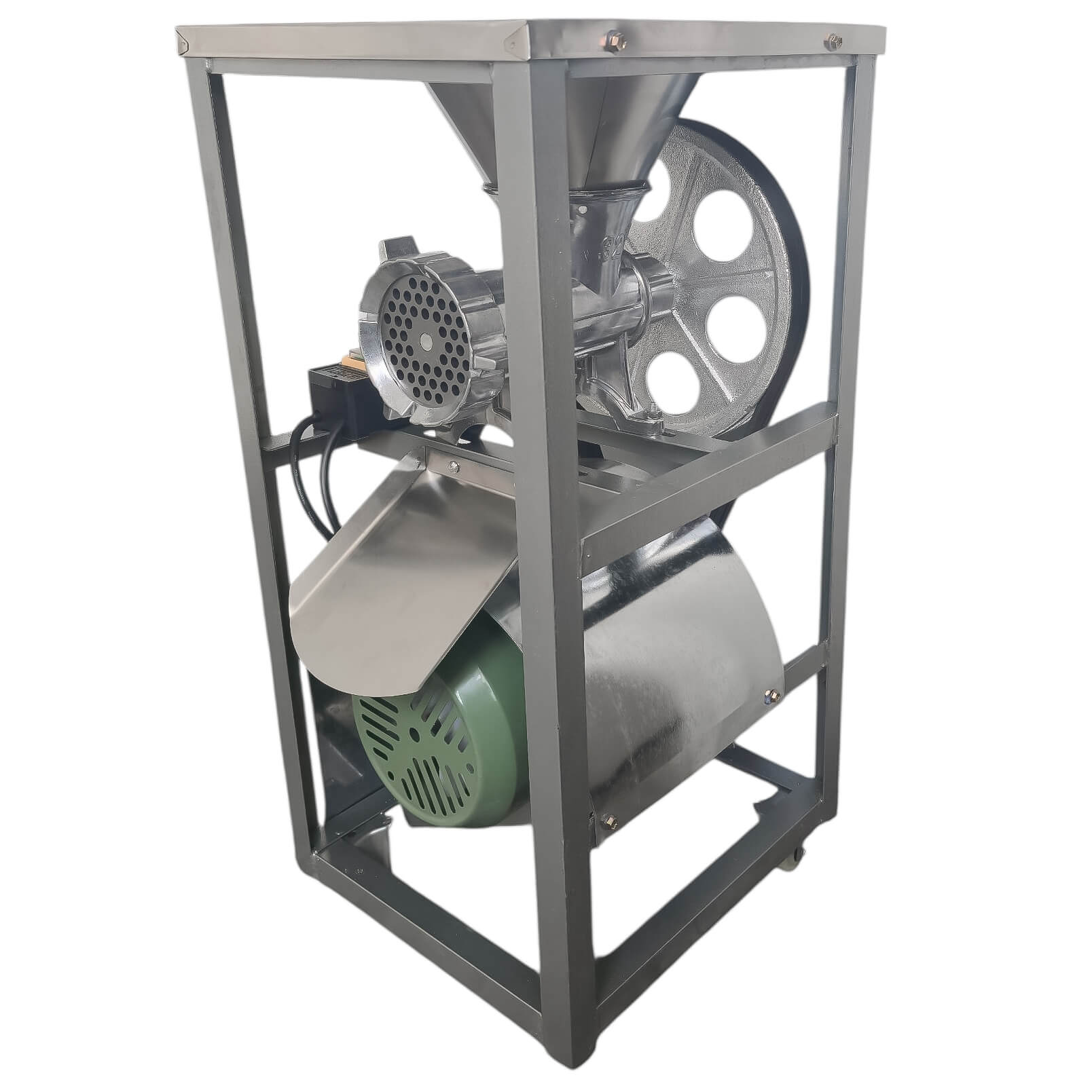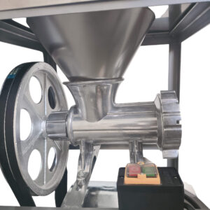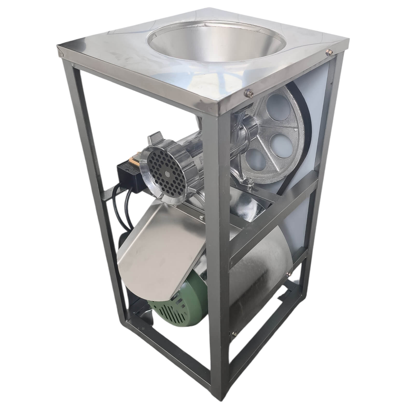 Корпусът и мелещият цилиндър са масивно изработени, което позволява равномерно смилане и по-висока производителност. Фунията е метална, широката ѝ форма улеснява подаването на продукта и ускорява процеса. Решетката е стандартен размер за №32 и позволява лесно почистване и бърза смяна при нужда.