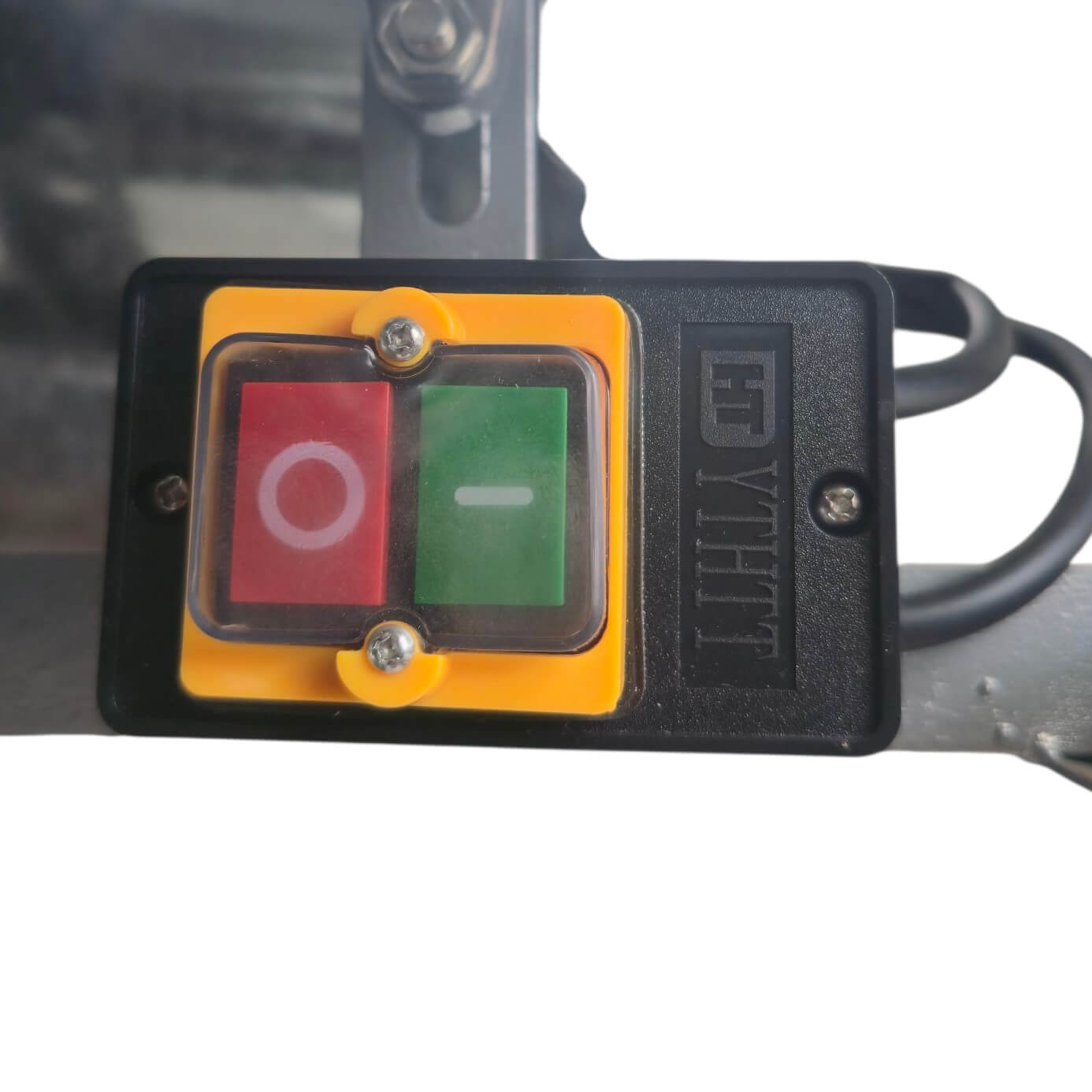 Стойката е здрава, подсилена и оборудвана с колела за удобно преместване. Управлението се извършва чрез двоен старт/стоп бутон, разположен отпред за безопасност и бърз достъп.