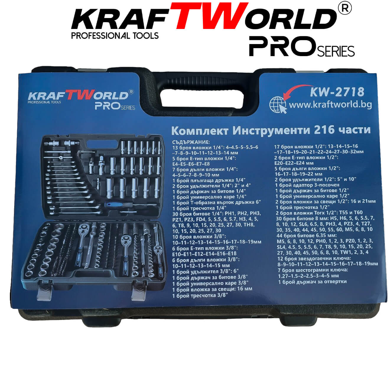 Гедоре 216 части KraftWorld PRO Series – пълен инструментален комплект за професионална работа 🔧