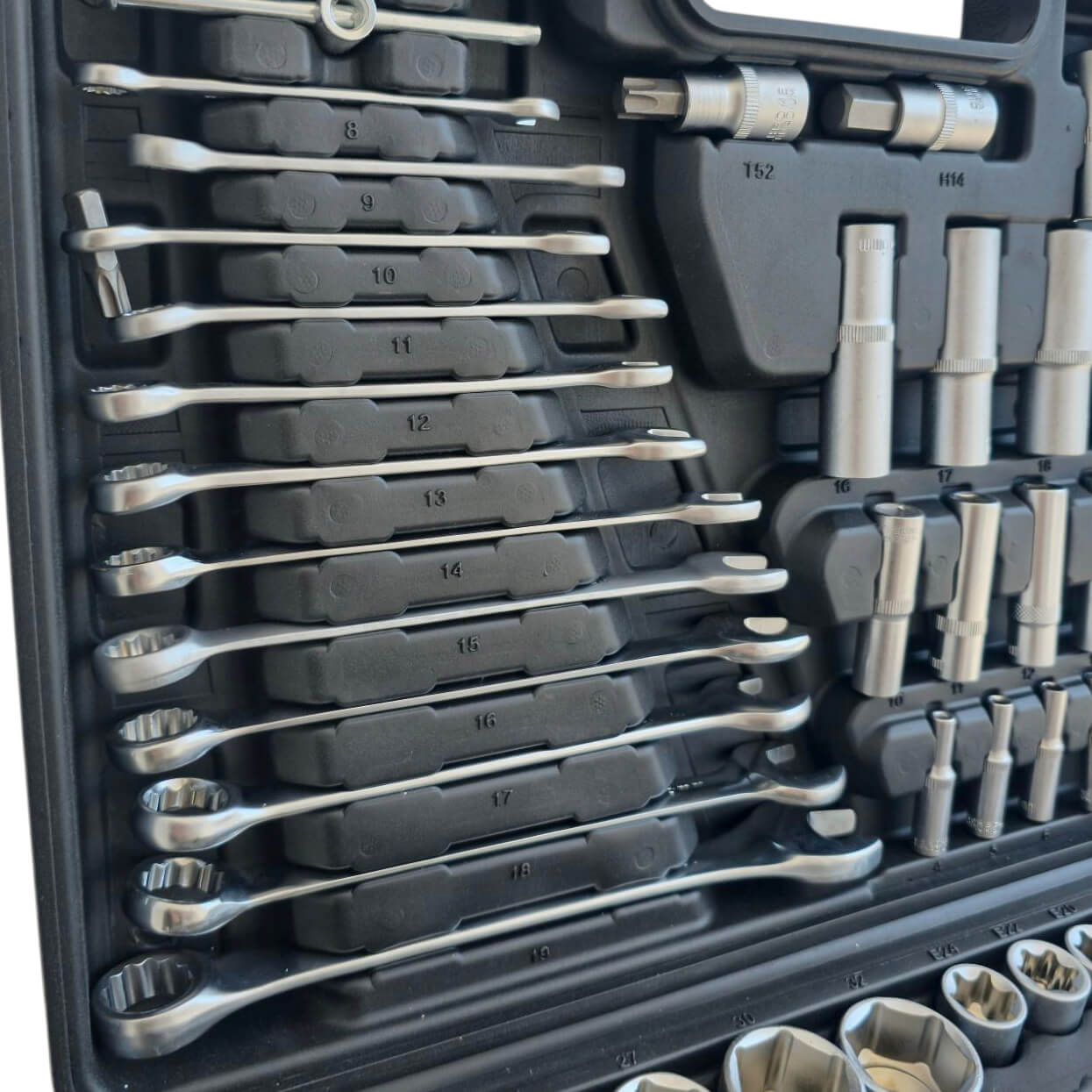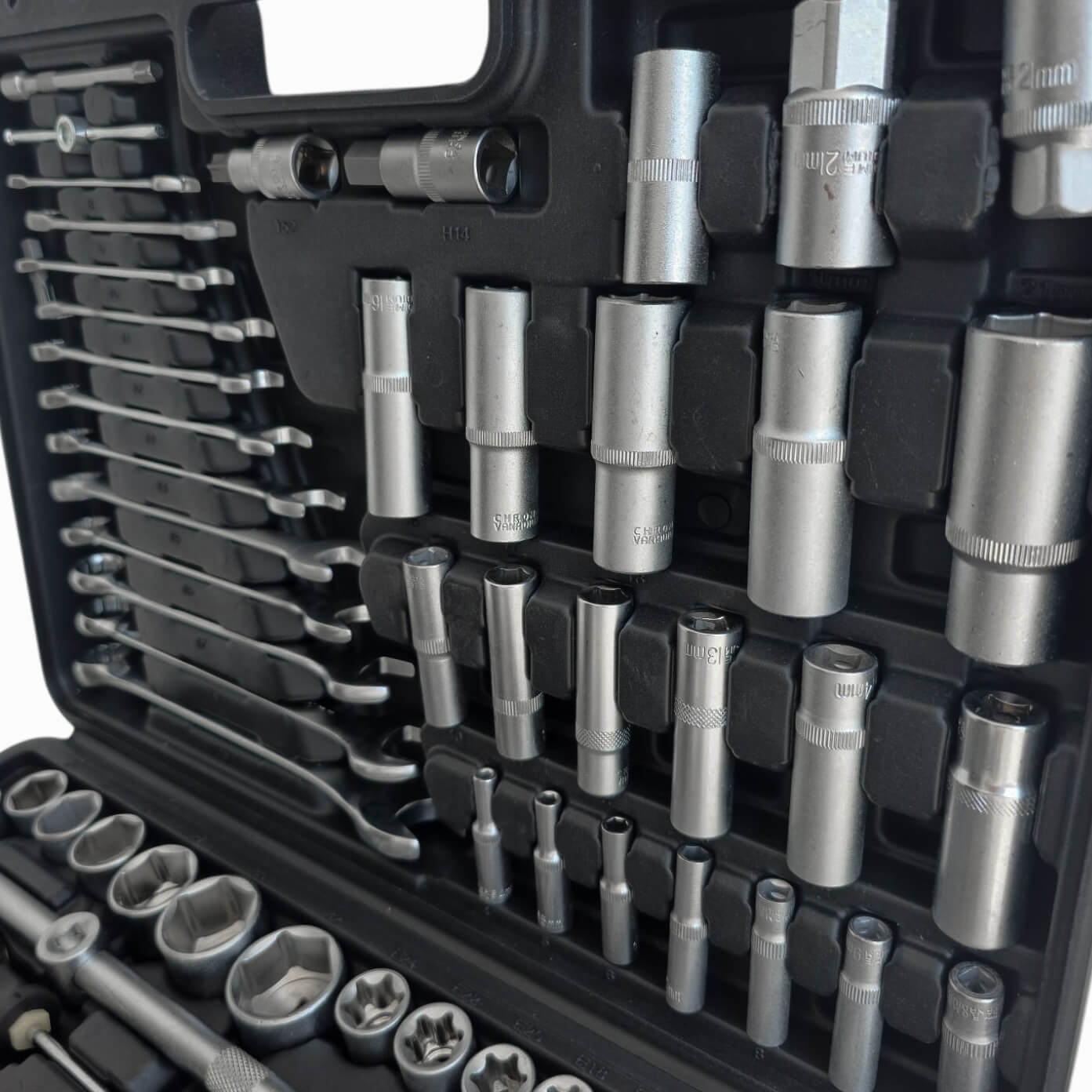 Комплектът е изработен от висококачествена хром-ванадиева стомана (CR-V), което гарантира устойчивост на високо натоварване, износване и дългогодишна употреба. Това е материалът, който професионалните механици търсят, защото издържа там, където стандартните инструменти се предават.