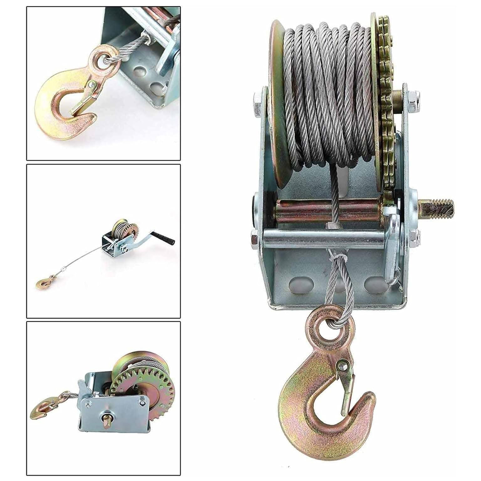 Тази ръчна лебедка е предназначена за по-сериозни натоварвания и е оборудвана с 2 скорости за по-голям контрол. С товароподемност 1100 кг и стоманено въже с дължина 10 м, тя е перфектен избор за лодки, ремаркета и други приложения.