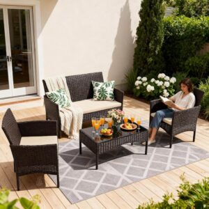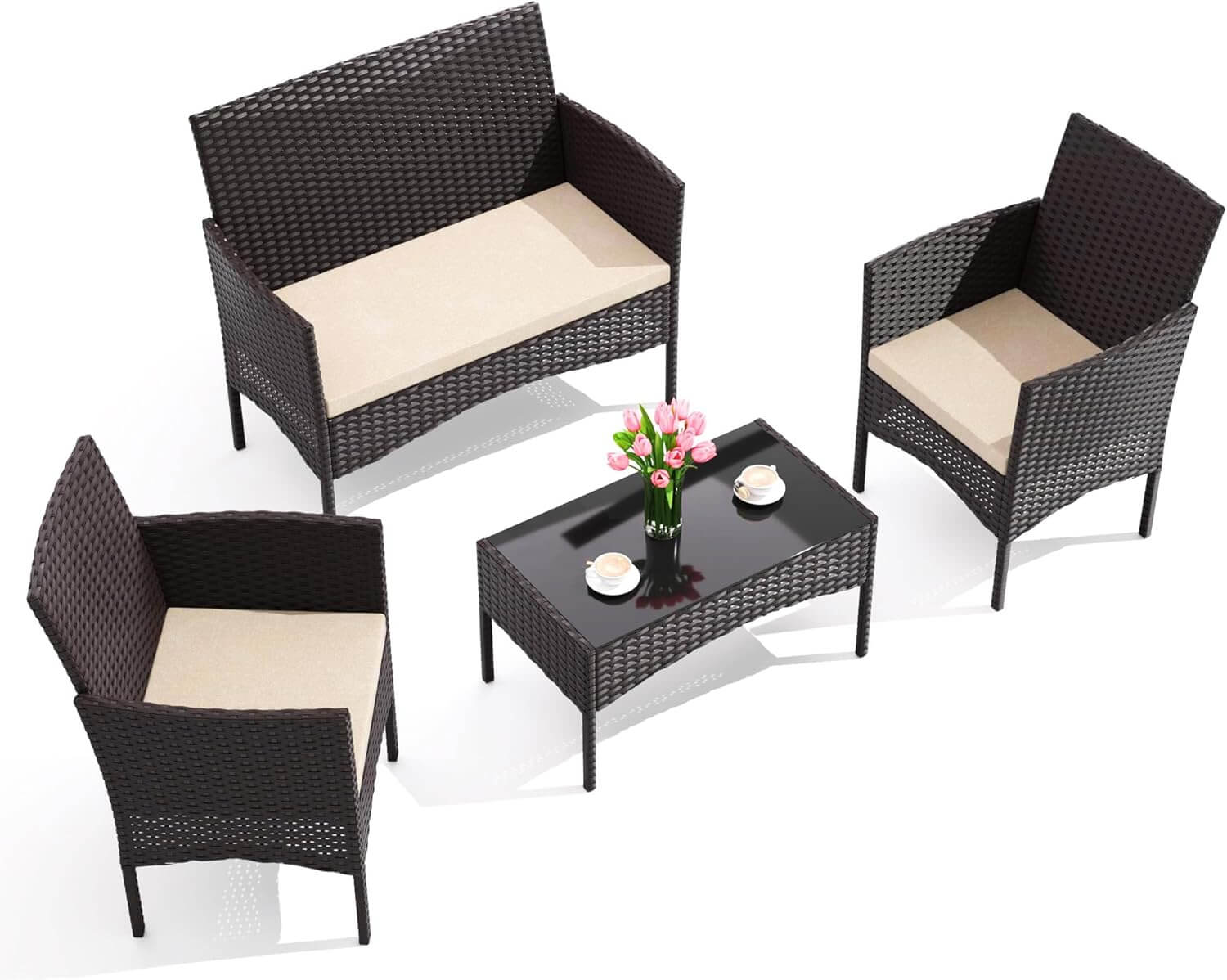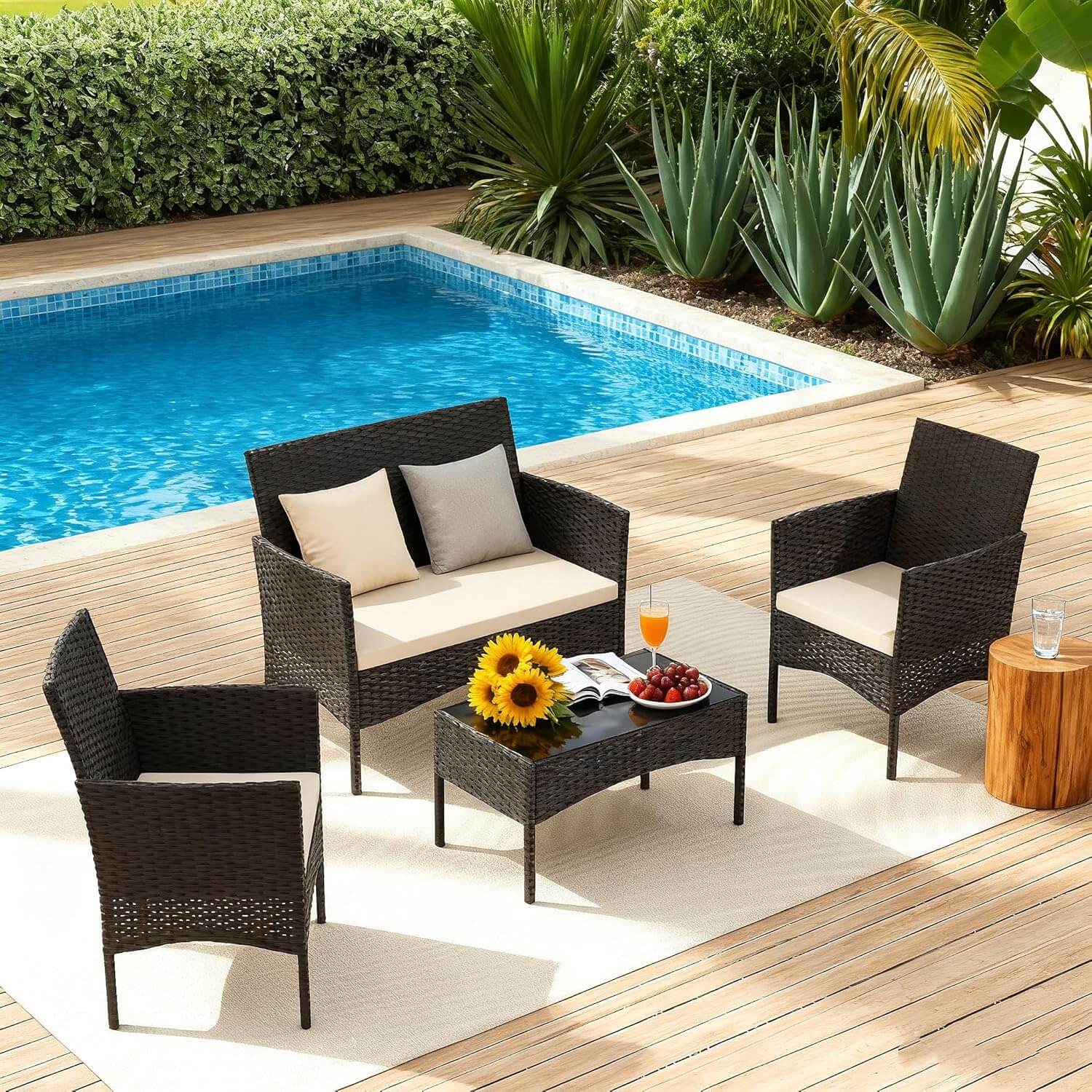 Материалите са подбрани така, че да издържат на слънце, дъжд и влага. UV устойчивият ратан запазва цвета си, без да избледнява, а конструкцията остава стабилна дори при продължително използване навън.