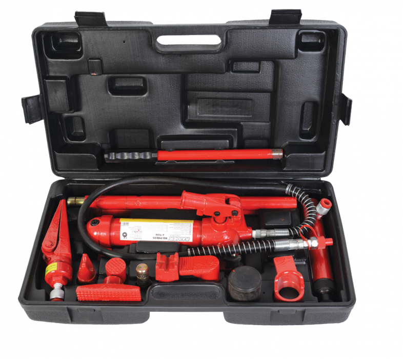 Цилиндърът, хидравличната помпа и аксесоарите са част от хидравличната система, известна като разпъвачка.