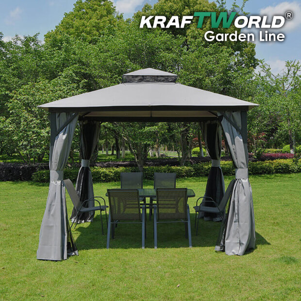 Тази градинска шатра Palermo 3×3м разчита на здрава метална конструкция, която е допълнително подсилена за по-голяма устойчивост. Това означава стабилност дори при по-ветровито време и дълъг експлоатационен живот.