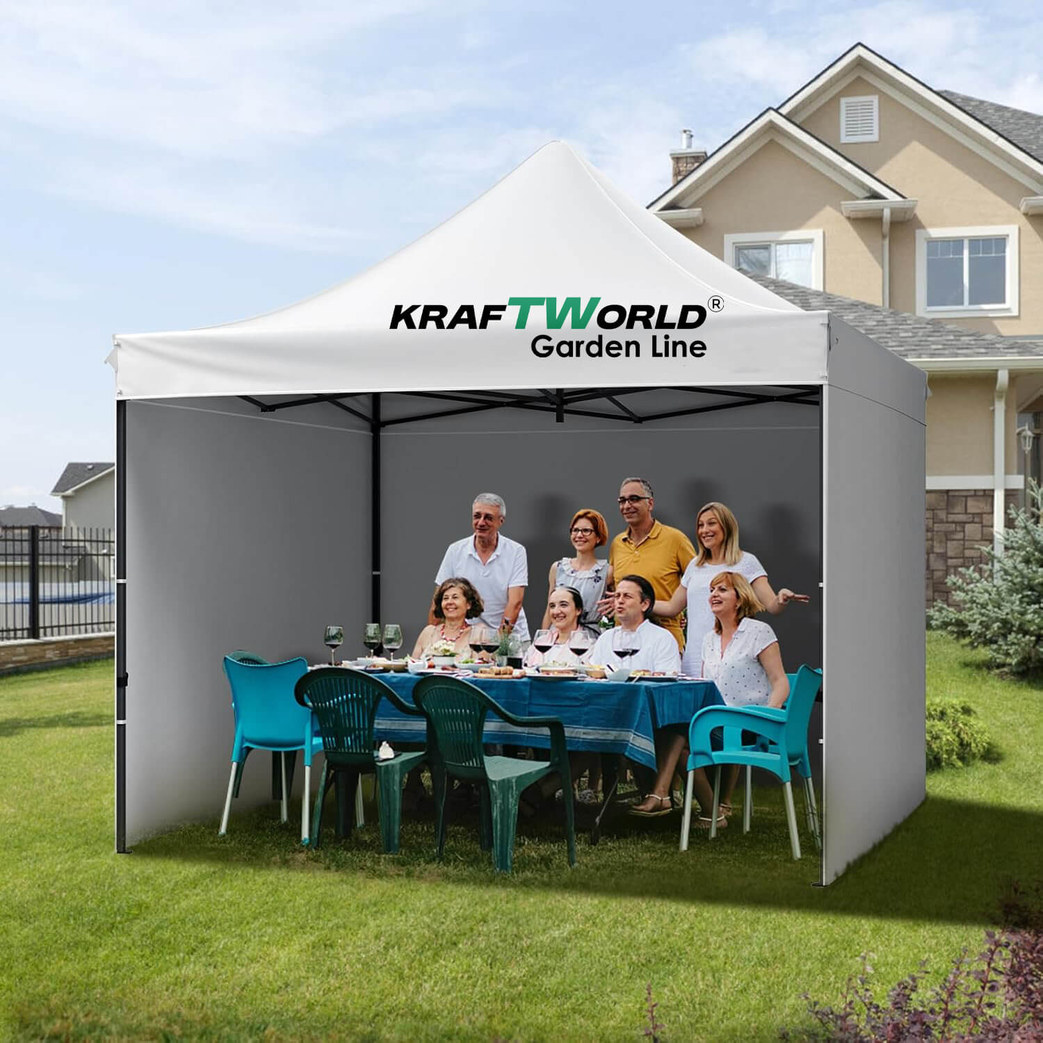Тази страница за шатра е идеалното допълнение за градински събития, къмпинг, търговски щандове и семейни събирания. Доверете се на надеждно решение за всеки повод на открито!
