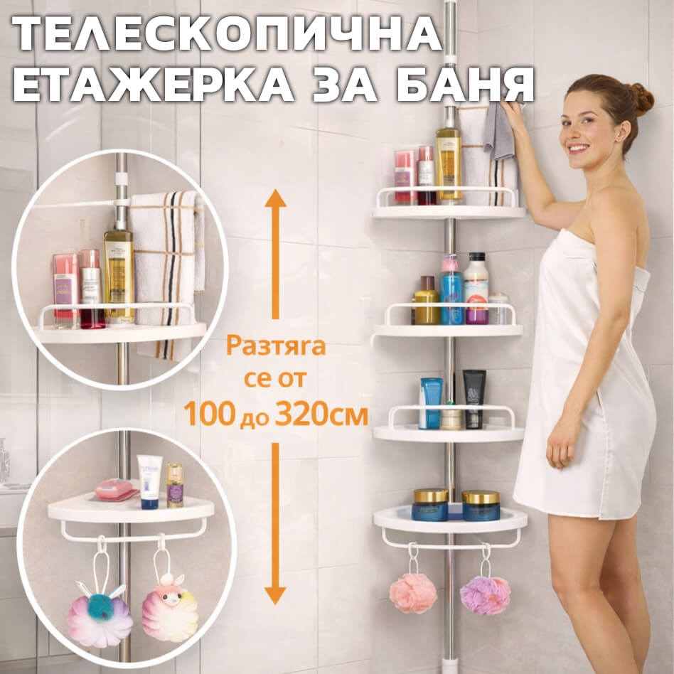 🚿 С тази телескопична ъглова етажерка за баня ще подредите лесно всички принадлежности и ще освободите повече пространство. Практично решение за всяка баня.