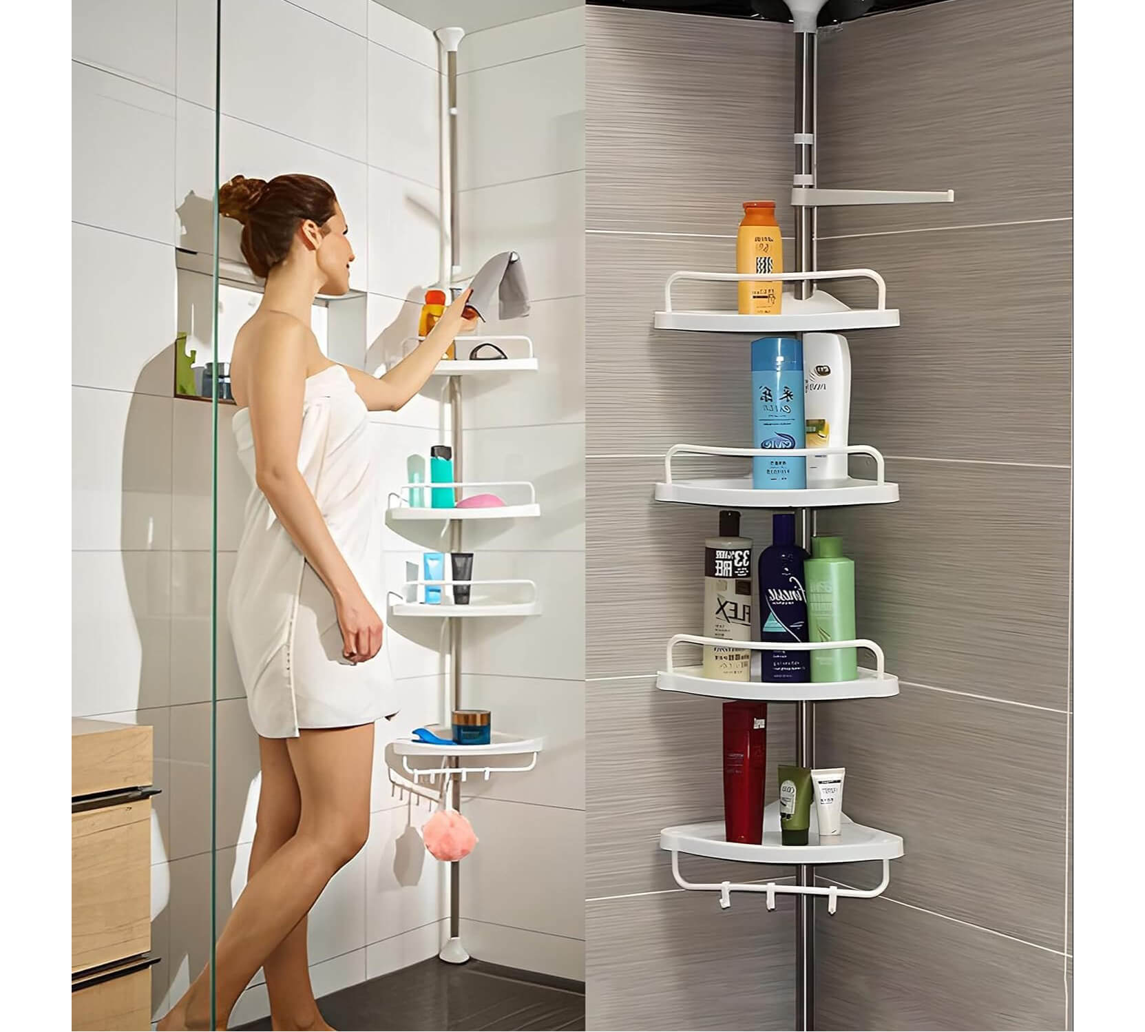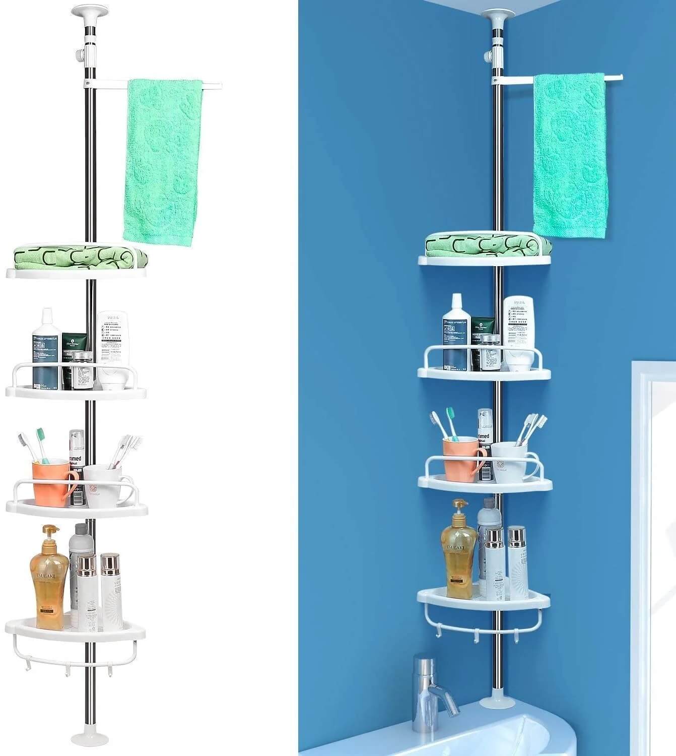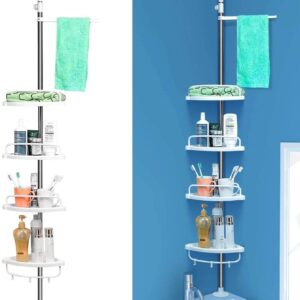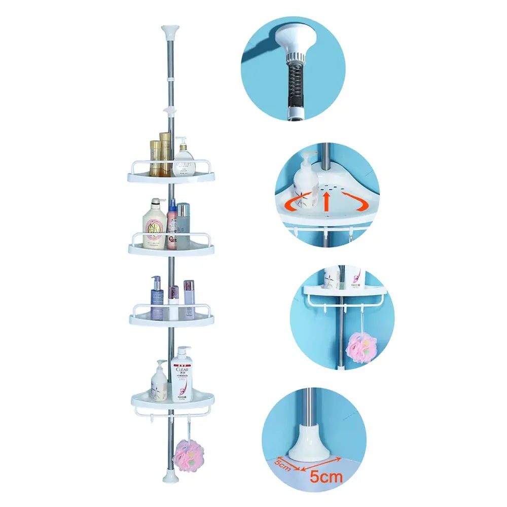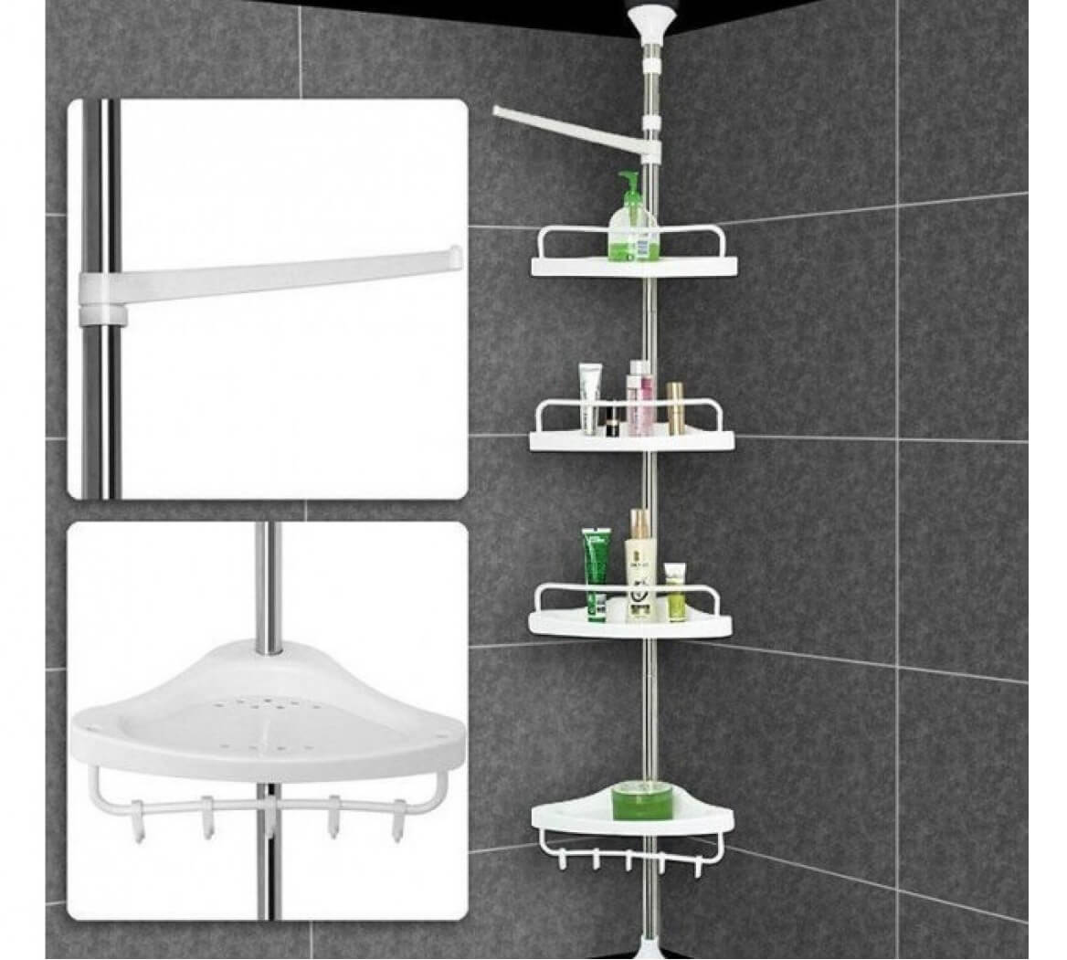 🚿Ако търсите удобен начин да подредите козметиката и аксесоарите в банята, тази телескопична ъглова етажерка за баня е идеалното решение. Благодарение на компактния дизайн и регулируемата височина, тя се вписва отлично в ъгъла на банята и осигурява много пространство за съхранение.