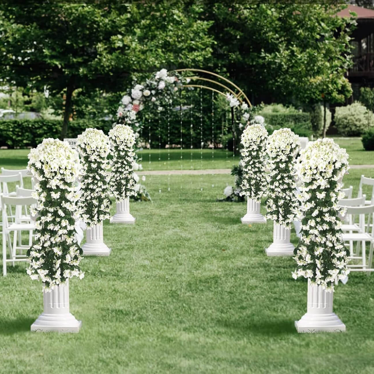 Устойчив на различни метеорологични условия, този букет не избледнява и не се поврежда от слънце или влага. Идеален е както за декорация на врати и прозорци, така и за използване на тераси, беседки, заведения или сватбени арки.