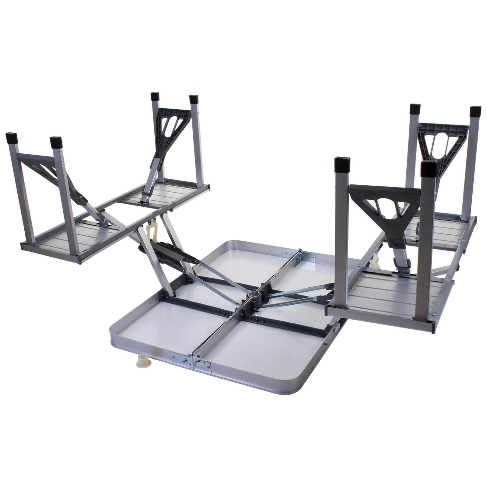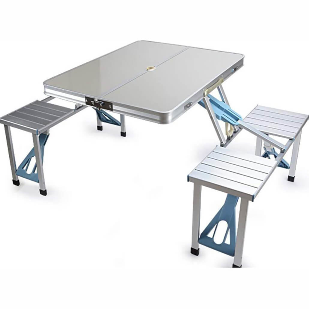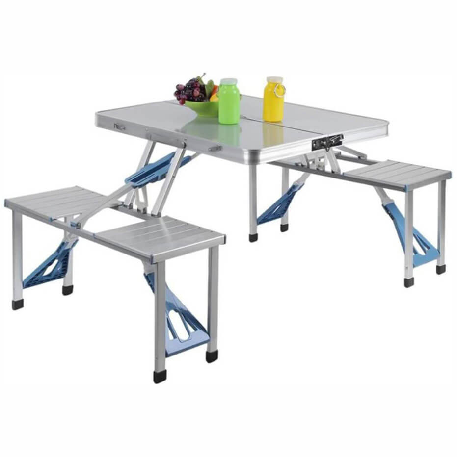 Търсиш надежден и компактен комплект за хранене и отдих сред природата? Представяме ти алуминиева къмпинг маса с 4 интегрирани седалки – проектирана с мисъл за стабилност, удобство и мобилност. Лека и лесна за сгъване в удобен куфар, тази маса е перфектният спътник за къмпинг, пикник, фестивал, риболов или семейна почивка.
